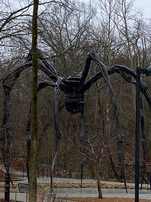 This thirty foot sculpture titled Maman (Mother of Spiders) by Louise Bourgeois once hovered over the entrance to Crystal Bridges, a museum in Arkansas. It was an ominous welcome to a place filled with light and art and brilliant expressions of humanity. Gorgeous and menacing, tall and terrible, symbolizing protection and venom, it has recently been relocated to the nature trail, and it always reminds me of high school.